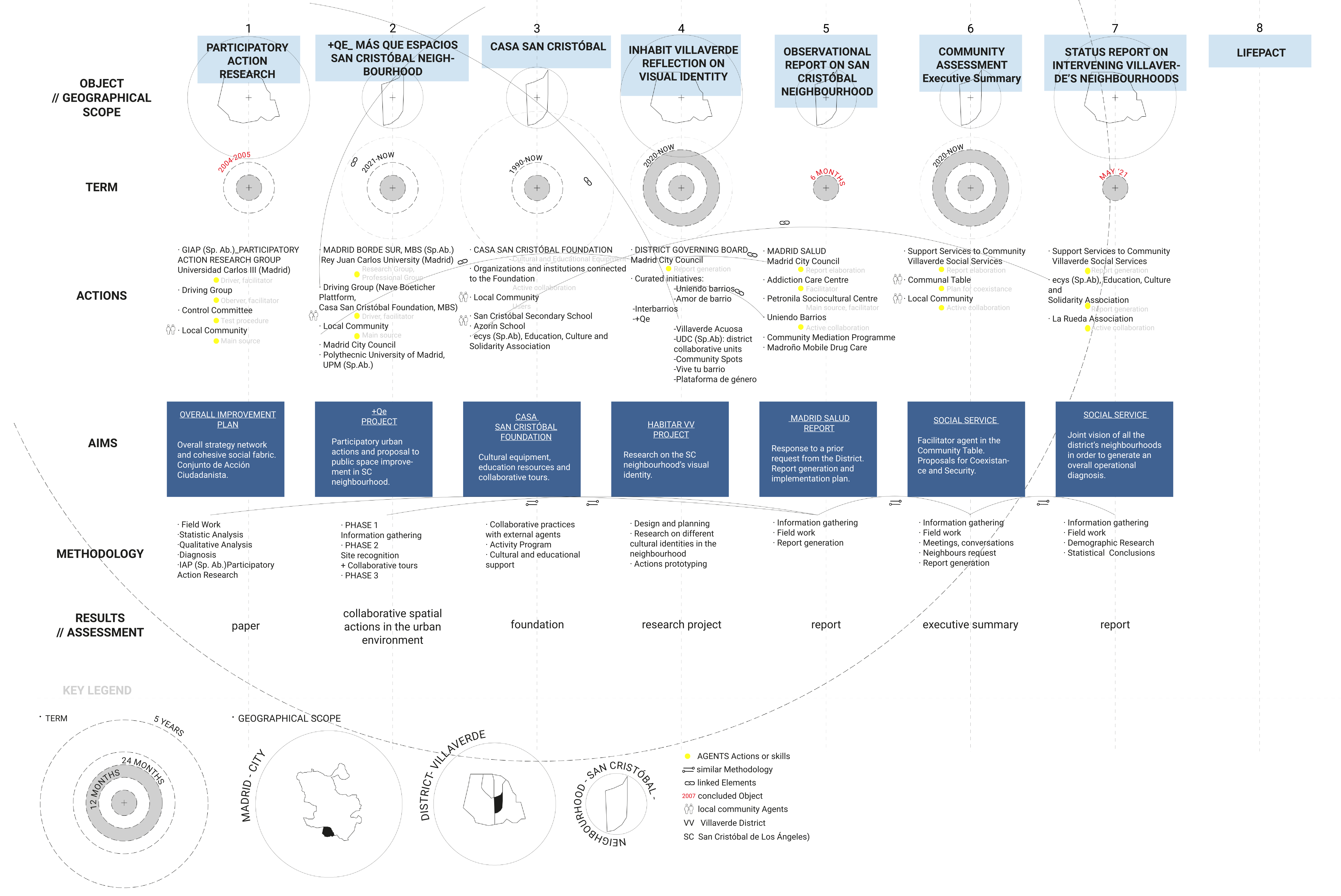 Durante el diagnóstico del proyecto de intervención en San Cristóbal de los Ángeles, se llevó a cabo un estudio multiescalar para comprender la complejidad social, ambiental y espacial del área de intervención. La imagen muestra el mapeo de los distintos análisis desarrollados, no solo por el equipo promotor del proyecto, sino también por diversas organizaciones que ya venían trabajando en el barrio. A través de un enfoque que combinó herramientas de investigación-acción participativa, análisis climático, dinámicas barriales y percepciones vecinales, se integraron datos cuantitativos y cualitativos mediante talleres con estudiantes, mapeos colaborativos y observaciones en el territorio. Así, el diagnóstico no fue únicamente un ejercicio técnico, sino también un proceso colectivo de escucha activa y reconocimiento del conocimiento situado en la comunidad.