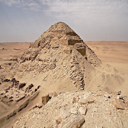 Durante el Reino Medio la calidad de las construcciones decayó, limitando la construcción a un alzado de sillares exteriores pero con un relleno de mampostería y losas sustraídos de monumentos más antiguos, incluso saqueados de los complejos funerarios de Guiza.